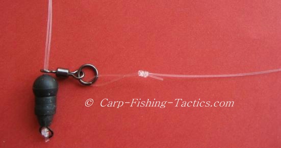 I placed a small flying back lead onto the stiff vertical line underneath the swivel. This was then covered over with a rubber bead to buffer the swivel so it can still move freely.