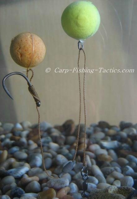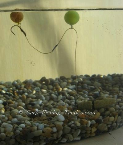 This is a simple, but very effective rig for catching carp. It catches carp out because of the buoyancy of the pop up, the bait flies into a carp's mouth very easily. The other good point about this carp rig comes from the weight of the shot, it pulls the hook downwards when inside a fish's mouth, this means the point of the hook can be in contact with the bottom of the lip quickly.